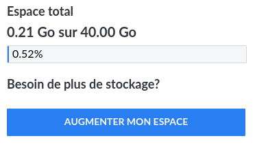 Dans l’écran qui affiche l’espace occupé, cliquez sur le bouton Augmenter mon espace.