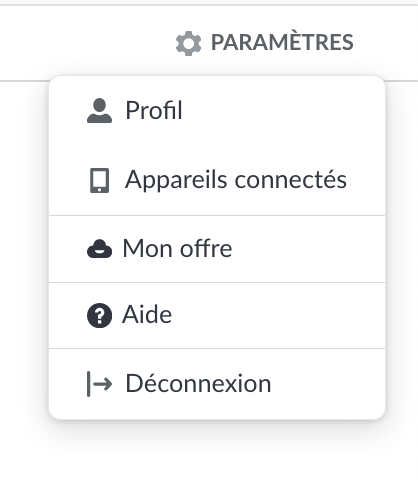 Dans votre interface Cozy, cliquez sur Paramètres en haut à droite puis sur l'onglet Mon offre.‌